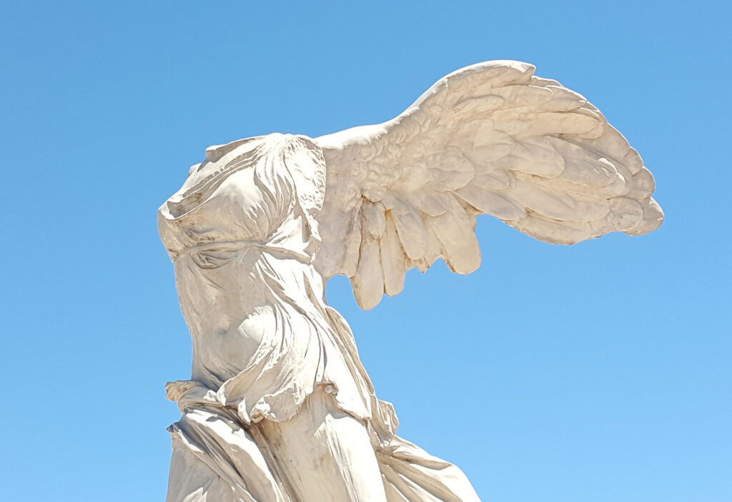 La Nike di Samotracia è una scultura in marmo della scuola di Rodia, attribuita a Pitocrito, databile al 200-180 a.C. circa e oggi conservata al Museo del Louvre di Parigi, che raffigura la dea Nike. È collocata in cima allo scalone che collega la Galerie d’Apollon, dove Napoleone la volle, in seguito al ritrovamento nel 1863, come posto d’onore e lì si trova ancora oggi. Nike è un personaggio della mitologia greca, personificazione della vittoria, figlia del titano Pallante e della ninfa Oceanina Stige, è sportiva e bellica. Nike viene raffigurata come donna con le ali, da qui l’appellativo di Vittoria Alata, a cui si è ispirato, imitandone l’ala, il noto logo di scarpe sportive NIKE. Certo, è un’opera molto famosa, ammirata ogni anno da migliaia di turisti, ma che cosa c’è di così seducente in questa scultura che da secoli attira così tanti sguardi? Sicuramente lo splendore della composizione, il candore del marmo, la slancio della posizione della figura, le pieghe dell’abito che aderiscono morbidamente al corpo della dea.  Ma c’è un elemento che la rende affascinante: è il fatto che sia acefala e senza braccia, è il vuoto che chiede di essere completato, e noi siamo tutti lì a coglierne l’incompletezza nella quale ci riconosciamo come essere umani. Perfezione viene dal verbo latino perficio: un verbo che significa compiere, completare, finire, fare completamente. Perfectum è il participio perfetto, appunto, e vuol dire “fatto, compiuto, concluso”. Ma è l’imperfezione della Nike che suscita in noi emozioni forti e contrastanti: la vera perfezione è sentirsi sempre un cerchio che non si è ancora chiuso, in costante divenire verso il miglioramento. L’inganno della perfezione è tutto qui: noi vi aspiriamo molto spesso, ignorando quanto perfetto sia sinonimo di finito e quindi inerte, immobile, terminato. La bellezza della vita invece è la tensione della imperfezione verso la pienezza. È l’imperfezione che ci rende vivi.