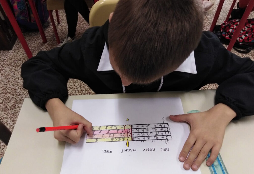 Gli studenti di quinta primaria, con l’occasione, hanno letto un libro dedicato alla musica, visionato le foto dal campo di Birkenau, lavorando infine su un elaborato che richiamava alla forza della musica come speranza: “Musik macht frei” è stato il leitmotiv di questa attività, a ripresa del famoso “arbeit macht frei”, motto posto all’ingresso di numerosi lager.