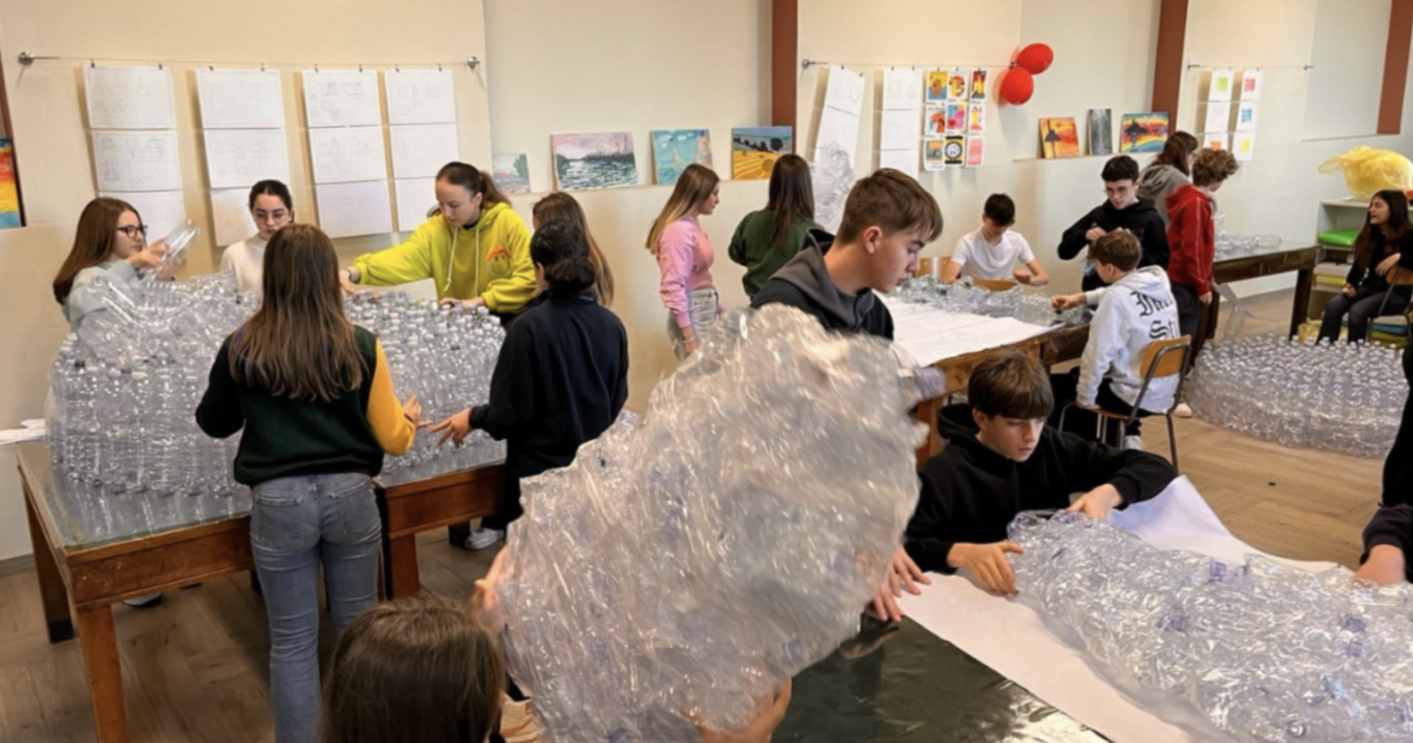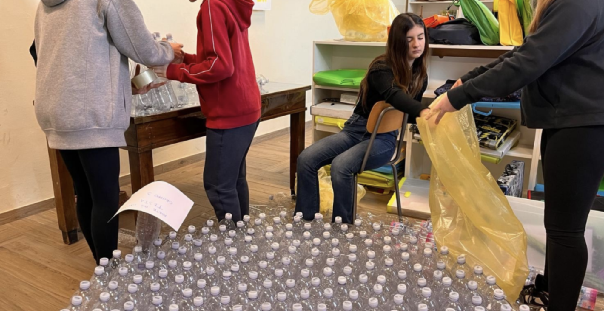 Partendo dalla plastica di scarto prodotta dalla scuola e dalle famiglie, sono state create due installazioni permanenti che verranno esposte a scuola.
