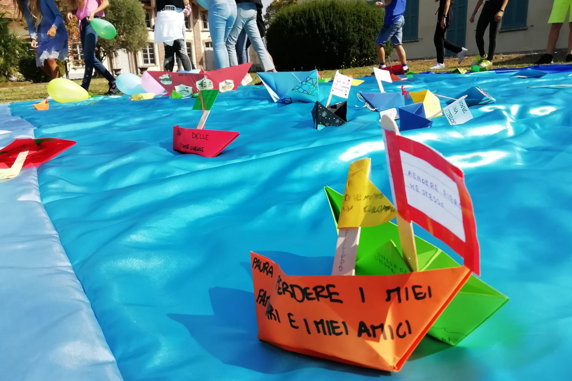 Lunedì 13 settembre, è stata la volta degli alunni di seconda e di terza, i veterani della scuola, che da noi insegnanti si aspettano sempre cose grandi. Il Progetto accoglienza quest’anno prevedeva l’allestimento di un’istallazione artistica nel parco della scuola. Tema della riflessione: il bisogno di esplorare e di conoscere l’ignoto intrinseco in ognuno di noi. Nella classe seconda si è partiti dalla riflessione sul testo di J.Breil, Conosco delle barche, in terza dalla poesia di G. Gray, dall’Antologia di Spoon River. Ecco alcuni versi: