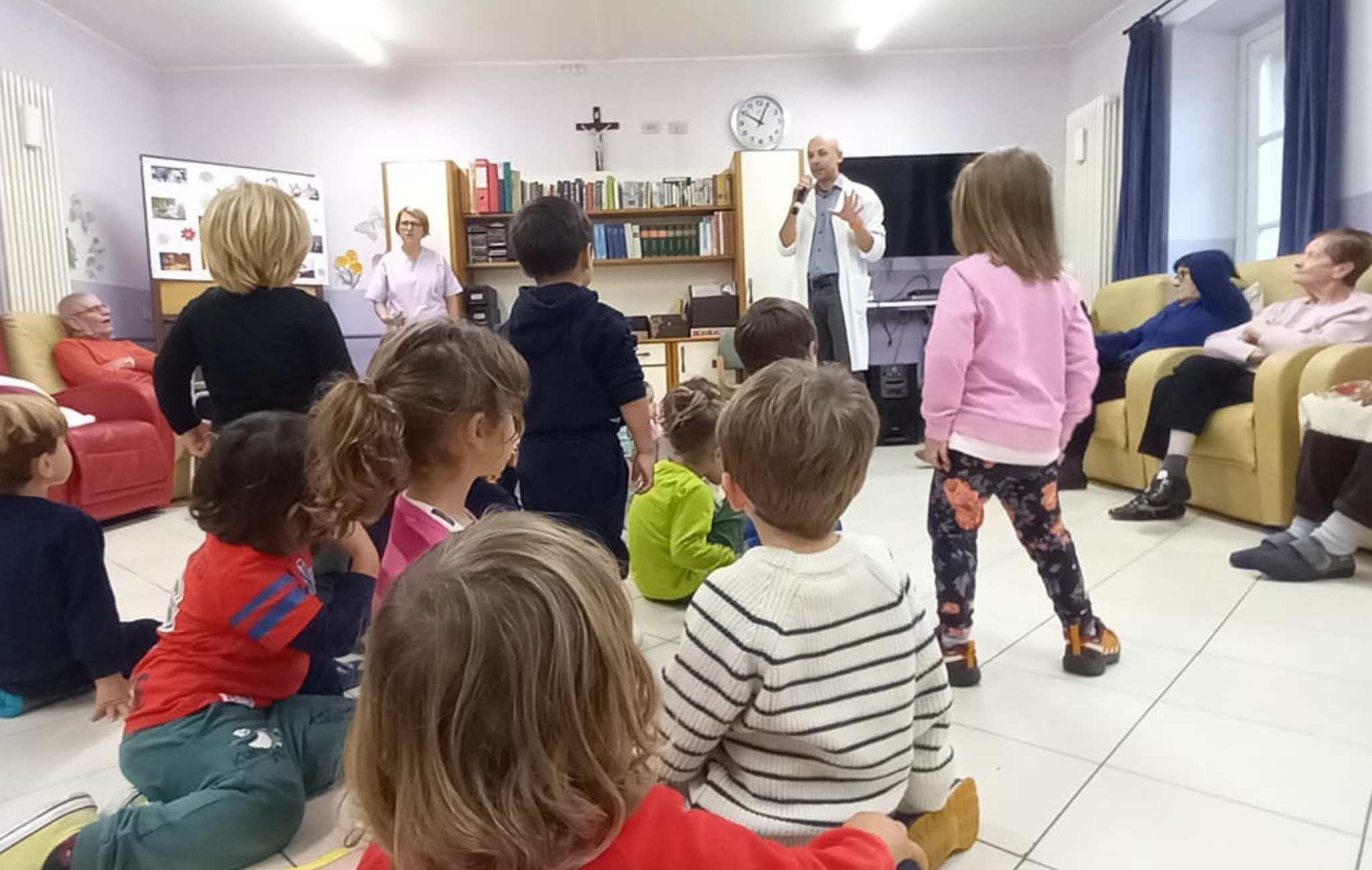Dopo aver ospitato i nonni tra noi, è ora il momento per i nostri studenti di uscire, esplorare e portare la loro rete anche fuori dalle nostre mura. La prima iniziativa è stata una visita alla RSA del territorio, dove abbiamo avuto l’opportunità di trascorrere una giornata speciale insieme agli anziani. Abbiamo cantato insieme, scambiato sorrisi e chiacchiere e condiviso un’altra merenda.